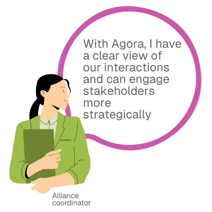 The Stakeholder Management service on Agora, powered by its integrated Customer Relationship Management (CRM) module , is designed to support strategic, informed, and scalable communication across the university alliance or network.
